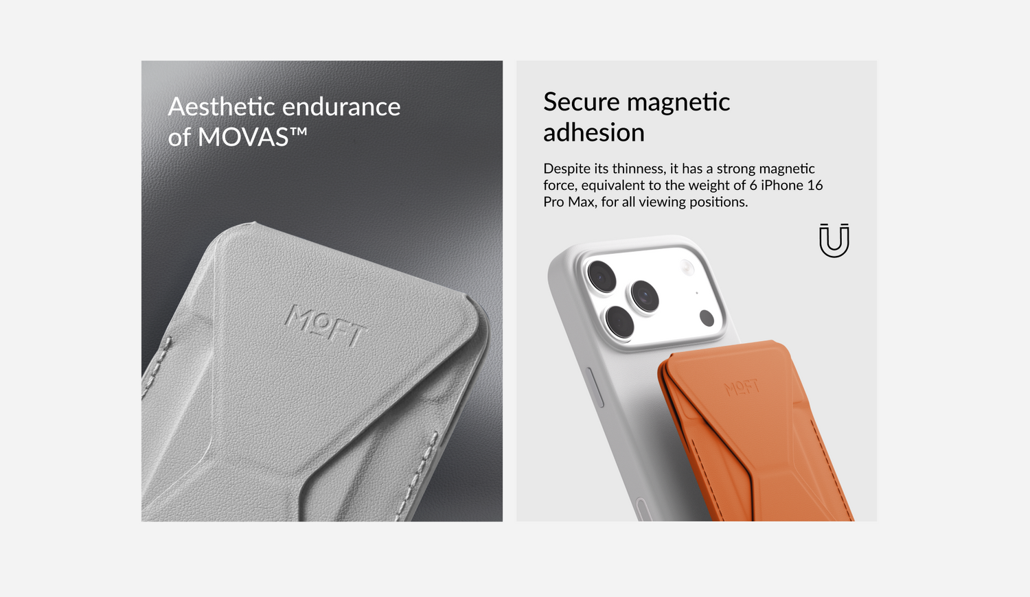 The width remains the same, but it’s vertically shorter than MOFT X and longer than MOFT X Compact version. It’s 0.5mm thicker and 10g heavier than MOFT X because of the magnet inside.